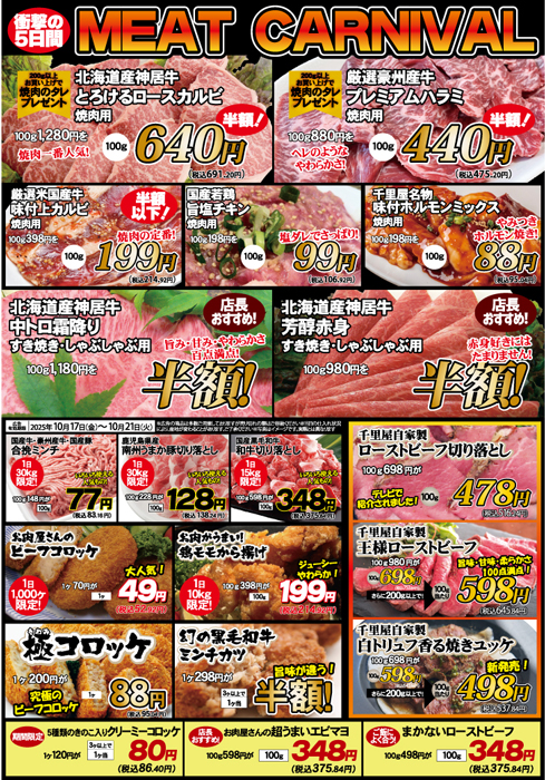 肉工房千里屋 四條畷店 有効期限:2025年10月18日(土)~10月24日(金)